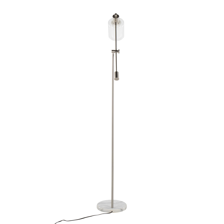 Marcel Contemporary\u002F Glam Floor Lamp in White Marble and Nickel Metal with Clear and Frosted Glass Shade by LumiSource